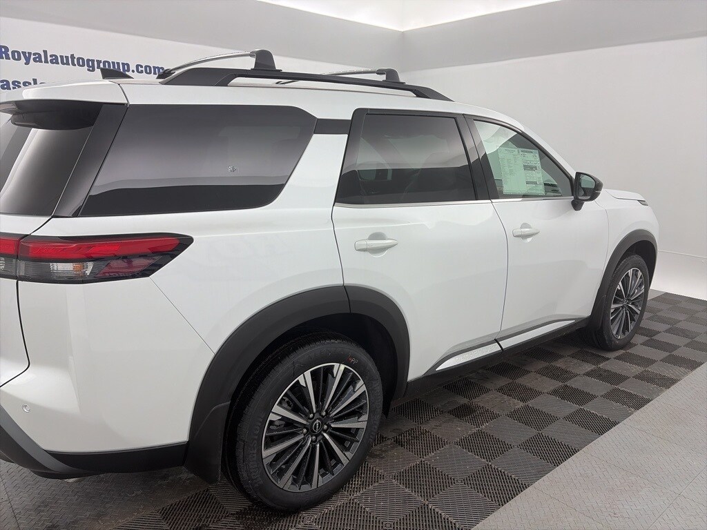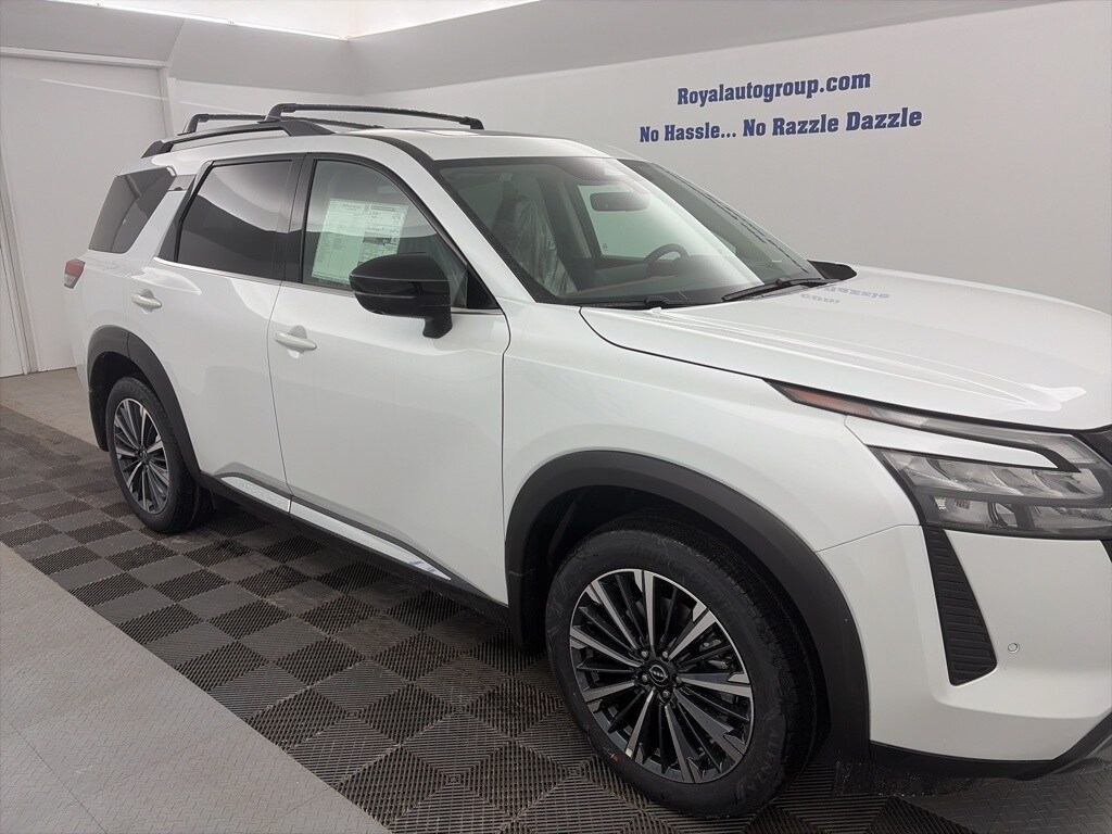 Royal Nissan Subaru is proud to offer this charming 2026 Nissan Pathfinder a truly gorgeous SUV with the following Features: Cargo Package (Cargo Area Protector, Cargo Net, and First Aid), 13 Speakers, 3rd row seats: bench, 4-Piece Black Splash Guards, 4-Wheel Disc Brakes, ABS brakes, Air Conditioning, Alloy wheels, AM/FM radio: SiriusXM w/360L, Auto High-beam Headlights, Auto tilt-away steering wheel, Auto-dimming Rear-View mirror, Automatic temperature control, Bench Seat Carpeted Floor Mats, Bodyside moldings, Bose Premium Audio System, Brake assist, Bumpers: body-color, Climate Controlled Front Bucket Seats, Cross Bars, Delay-off headlights, Driver door bin, Driver vanity mirror, Dual front impact airbags, Dual front side impact airbags, Electronic Stability Control, Emergency communication system: NissanConnect Services, Four wheel independent suspension, Front anti-roll bar, Front Bucket Seats, Front Center Armrest, Front dual zone A/C, Front reading lights, Fully automatic headlights, Garage door transmitter: HomeLink, Heads-Up Display, Heated door mirrors, Heated front seats, Heated rear seats, Heated steering wheel, Illuminated entry, Knee airbag, Low tire pressure warning, Memory seat, NissanConnect featuring Apple CarPlay and Android Auto, Occupant sensing airbag, Outside temperature display, Overhead airbag, Overhead console, Panic alarm, Passenger door bin, Passenger vanity mirror, Power door mirrors, Power driver seat, Power Liftgate, Power moonroof, Power passenger seat, Power steering, Power windows, Premium Paint, Radio data system, Radio: AM/FM Audio System with NissanConnect, Rain sensing wipers, Rear air conditioning, Rear anti-roll bar, Rear reading lights, Rear seat center armrest, Rear side impact airbag, Rear window defroster, Rear window wiper, Reclining 3rd row seat, Remote keyless entry, Security system, Semi-Aniline Leather-Appointed Seating Surfaces, Speed control, Speed-sensing steering, Speed-Sensitive Wipers, Split folding rear seat, Spoiler, Steering wheel memory, Steering wheel mounted audio controls, Tachometer, Telescoping steering wheel, Tilt steering wheel, Traction control, Trip computer, Turn signal indicator mirrors, Variably intermittent wipers, Ventilated front seats, and Wheels: 20" Machined Alloy. Recent Arrival!
