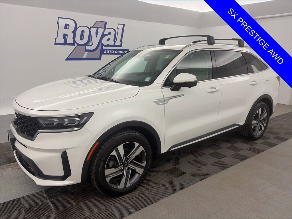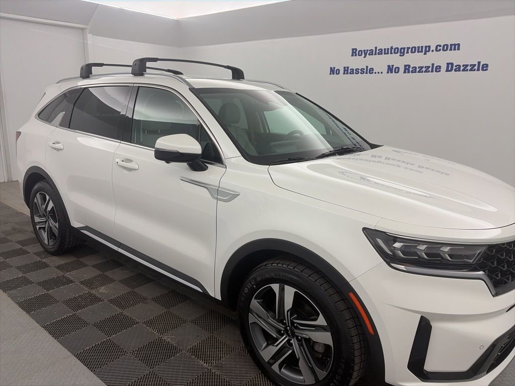 2023 Kia Sorento Hybrid SX Prestige AWD Snow White Pearl 6-Speed Automatic 1.6L I4 DGI Hybrid Turbocharged DOHC 16V LEV3-ULEV70Priced below KBB Fair Purchase Price! Recent Arrival! 36/33 City/Highway MPG Odometer is 4401 miles below market average!Royal Motor Company is proud to offer this fantastic 2023 Kia Sorento Hybrid a truly handsome SUV with the following Features: 12 Speakers, 3rd row seats: split-bench, 4-Wheel Disc Brakes, ABS brakes, Air Conditioning, Alloy wheels, AM/FM radio: SiriusXM, Apple CarPlay & Android Auto, Auto High-beam Headlights, Auto-dimming Rear-View mirror, Automatic temperature control, Axle Ratio: 3.510, Brake assist, Bumpers: body-color, Cargo Cover, Cargo Net, Carpet Floor Mats, Carpeted Cargo Mat w/Seatback Protection, Cross Bars, Delay-off headlights, Driver door bin, Driver vanity mirror, Dual front impact airbags, Dual front side impact airbags, Electronic Stability Control, Emergency communication system, Four wheel independent suspension, Front anti-roll bar, Front Bucket Seats, Front Center Armrest, Front dual zone A/C, Front fog lights, Front reading lights, Fully automatic headlights, Garage door transmitter: HomeLink, Heated & Ventilated Front Bucket Seats, Heated door mirrors, Heated front seats, Heated rear seats, Heated steering wheel, Illuminated entry, Knee airbag, Leather steering wheel, Low tire pressure warning, Memory seat, Navigation System, Occupant sensing airbag, Outside temperature display, Overhead airbag, Overhead console, Panic alarm, Passenger door bin, Passenger vanity mirror, Perforated Genuine Leather Seat Trim, Power door mirrors, Power driver seat, Power Liftgate, Power passenger seat, Power steering, Power windows, Radio data system, Radio: AM/FM/HD Radio/SiriusXM Audio System, Rain sensing wipers, Rear air conditioning, Rear anti-roll bar, Rear reading lights, Rear window defroster, Rear window wiper, Remote keyless entry, Roof rack: rails only, Security system, Smart Key w/ Push Button and Remote Start, Speed control, Speed-sensing steering, Split folding rear seat, Spoiler, Steering wheel mounted audio controls, Tachometer, Telescoping steering wheel, Tilt steering wheel, Traction control, Trip computer, Turn signal indicator mirrors, Variably intermittent wipers, Ventilated front seats, Wheel Locks, and Wheels: 19 Machine-Finished Alloy.