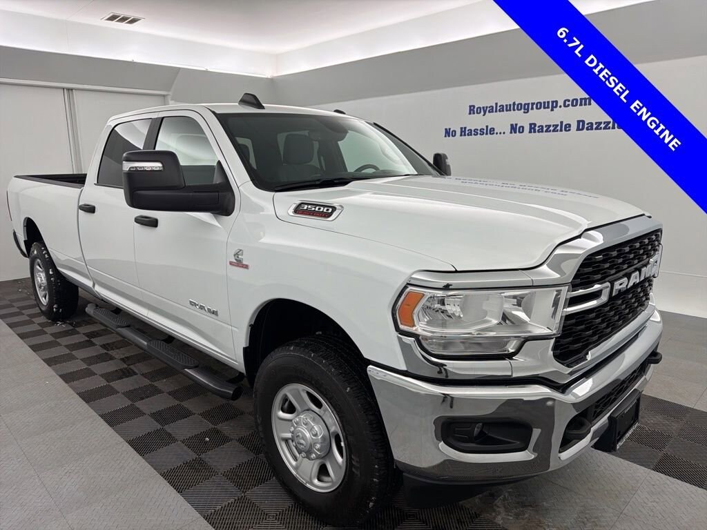 Royal Motor Company is proud to offer this charming 2024 Ram 3500 an absolutely gorgeous-looking Truck with the following Features: Level 1 Equipment Group (2 Way Rear Headrest Seat, 2nd Row In Floor Storage Bins, 4 Way Front Headrests, 40/20/40 Split Bench Seat, 4G LTE Wi-Fi Hot Spot, 8.4 Touchscreen Display, All R1 Low Radios, All Radio Equipped Vehicles, Apple CarPlay, Auto Power-Folding Mirrors, Black Exterior Mirrors, Bluetooth Handsfree Phone & Audio, Center Hub, Connectivity - US/Canada, Dual Glove Boxes, Exterior Mirrors Courtesy Lamps, Exterior Mirrors w/Heating Element, Exterior Mirrors w/Supplemental Signals, Foam Bottle Insert (Door Trim Panel), Footwell Courtesy Lamp, For Details Visit DriveUconnect.com, For More Info, Call 800-643-2112, Forward & Reverse Utility Lights, Front Armrest w/Cupholders, Front Center Seat Cushion Storage, Front Fog Lamps, Front Seat Back Map Pockets, Global Telematics Box Module (TBM), Glove Box Lamp, Google Android Auto, GPS Antenna Input, Integrated Center Stack Radio, Integrated Voice Command w/Bluetooth, Leather Wrapped Steering Wheel, Locking Lower Glove Box, Manual Adjust 4-Way Front Passenger Seat, Mirror Running Lights, Power Adjust 8-Way Driver Seat, Power Adjust Mirrors, Power Heated Fold Telescopic Mirrors, Power Telescoping Mirrors, Power-Adjustable Convex Aux Mirrors, Premium Cloth 40/20/40 Bench Seat, Rear 60/40 Folding Seat, Rear Dome w/On/Off Switch Lamp, Remote USB Port - Charge Only, Selectable Tire Fill Alert, SiriusXM Radio Service, SiriusXM Satellite Radio, Steering Wheel Mounted Audio Controls, Storage Tray, and Wheels: 18 x 8.0 Polished Aluminum), Quick Order Package 2HZ Big Horn, 3.73 Axle Ratio, 4-Wheel Disc Brakes, 5th Wheel/Gooseneck Towing Prep Group, 6 Speakers, ABS brakes, Active Noise Control System, Air Conditioning, Brake assist, Bumpers: chrome, Chrome Flat Cab-Length Side Steps, Cloth 40/20/40 Bench Seat, Compass, Delay-off headlights, Driver door bin, Dual front impact airbags, Dual front side impact airbags, Electronic Stability Control, Electronically Controlled Throttle, Emergency communication system: SiriusXM Guardian, Front anti-roll bar, Front Center Armrest w/Storage, Front License Plate Bracket, Front reading lights, Fully automatic headlights, Heated door mirrors, Illuminated entry, Low tire pressure warning, Manual Adjust 4-Way Driver Seat, Manufacturer's Statement of Origin, MOPAR Spray In Bedliner, Occupant sensing airbag, Outside temperature display, Overhead airbag, Overhead console, Panic alarm, ParkView Rear Back-Up Camera, Passenger door bin, Passenger vanity mirror, Power door mirrors, Power steering, Power windows, Radio data system, Radio: Uconnect 3 w/5 Display, Radio: Uconnect 5 w/8.4 Display (DISC), Rear Folding Seat, Rear seat center armrest, Rear step bumper, Remote keyless entry, Speed control, Tachometer, Tilt steering wheel, Tip Start, Traction control, Trip computer, Turn signal indicator mirrors, Variably intermittent wipers, Voltmeter, and Wheels: 18 x 8.0 Steel Chrome ClaD.